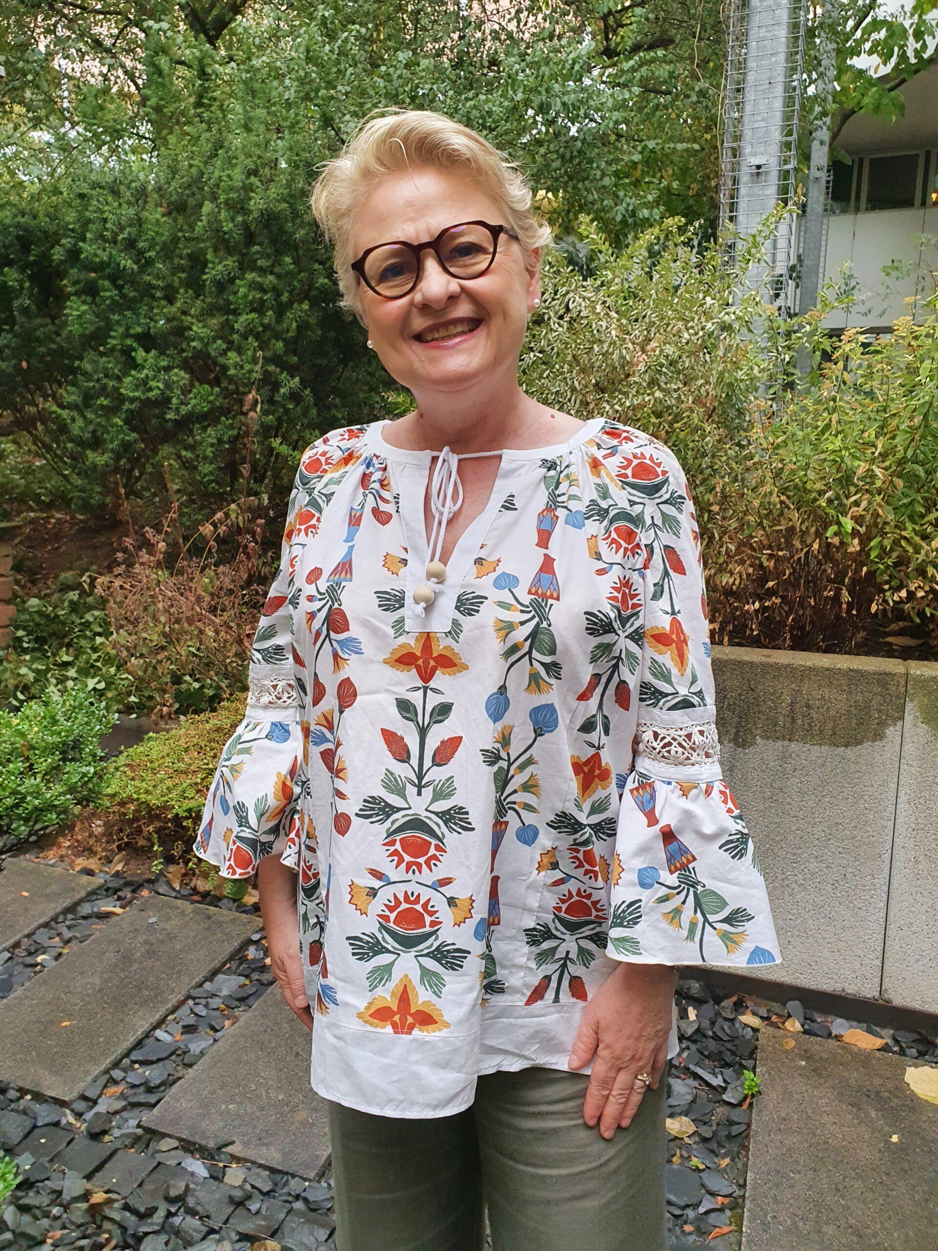 elle est bien originale et très gaie cette tunique et peut aller avec beaucoup de tissus unis, bravo !